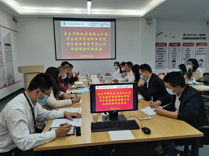 5月18日,重庆市邮政局七分局局长邹文松率队到我校调研智慧物流全流程产教融合实训基地建设情况,顺丰速运重庆有限公司副总经理王志芬,人力资源总监王自鹏、商学院党总支书记蒋芹忠、副院长(主持工作)邱云陪同调研。