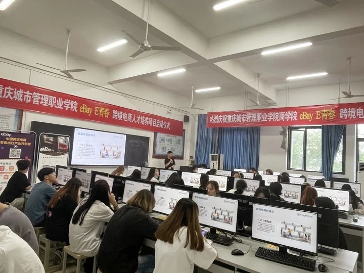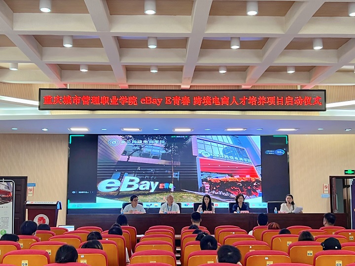 5月24日,eBay E青春 跨境电商人才培养项目启动仪式在我校召开。商学院党总支书记蒋芹忠,商学院副院长邱云、牟艳红,eBay重庆本土人才孵化优选服务商-渝贝跨境电商学院负责人汪姚平女士及其团队,跨境电子商务专业教师及2021级跨境电商专业学生参加此次启动仪式。会议由跨境电子商务专业带头人金莹主持。