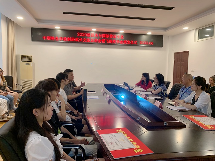6月23日中午,商学院在敏学楼A2会议室召开2020级报关与国际货运专业中国特色学徒制班成长交流总结会。飞蚂智能科技(苏州)有限公司(以下简称:飞蚂科技)副总经理池礼韬、飞蚂科技重庆区域经理喻江华、商学院党总支书记蒋芹忠、商学院副院长牟艳红、关务与外贸服务专业带头人黄蘋及2020级报关与国际货运专业中国特色学徒制班全体同学出席会议,会议由学徒制班负责人李昕主持。