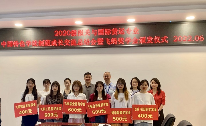 通过校方、企方及第三方以德、勤、绩、效等维度考核评定出6名2021-2022-2学年度“飞蚂之星”优秀学徒。与会期间,商学院党总支书记蒋芹忠、关务与外贸服务专业带头人黄蘋、飞蚂科技副总经理池礼韬分别为优秀学徒颁发了荣誉证书和奖学金。