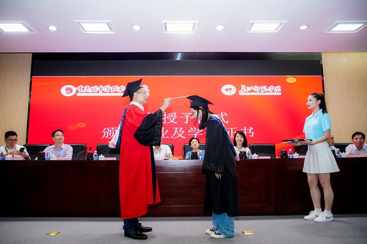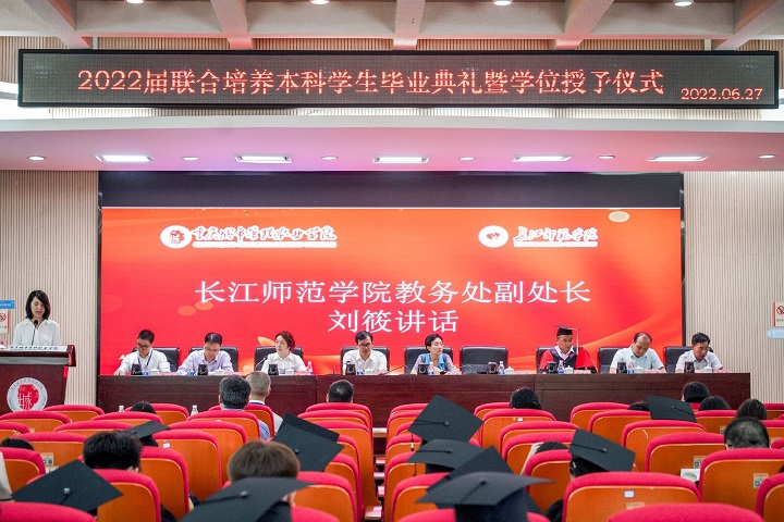 6月27日,长江师范学院、重庆城市管理职业学院2022届联合培养本科学生毕业典礼暨学位授予仪式在重庆城市管理职业学院办公楼103会议室隆重举行。此次毕业典礼我校副校长罗小秋,长江师范学院教务处副处长刘筱,大数据与智能工程学院党委书记谢秀军、管理学院副院长罗文宝、我校相关单位领导、教师代表、辅导员和2022届物流工程专业41名毕业生参加了典礼。此次活动由重庆城市管理职业学院教务处处长吕红主持。