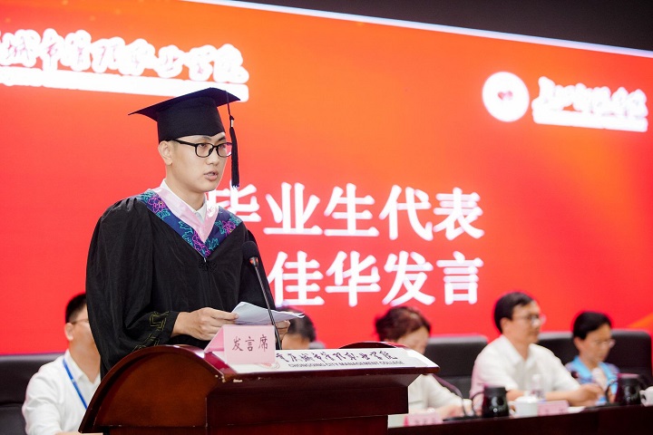 本次毕业典礼表彰了校级优秀大学毕业生10名,其中商学院物流工程专业的优秀学生有3名。长江师范学院管理学院副院长罗文宝逐一为2022届毕业生授位并颁发毕业及学位证书。商学院2018级物流工程专业孙佳华同学作为学生代表发表了毕业感言,言语间满是对母校的依依不舍和浓浓感恩。