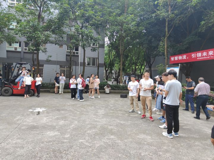 重庆旭普科技有限公司总经理、学校智能物流创研中心主任谢贵斌和工程师丁鑫,重庆市无人系统联盟负责人胡海波总经理、聂春燕经理、张亚军技师,商学院物流教研室钟小容老师、彭维老师、实训教研室龙丽老师和物流创新学社各兴趣小组成员以及其他同学共计80余人参加本次活动。