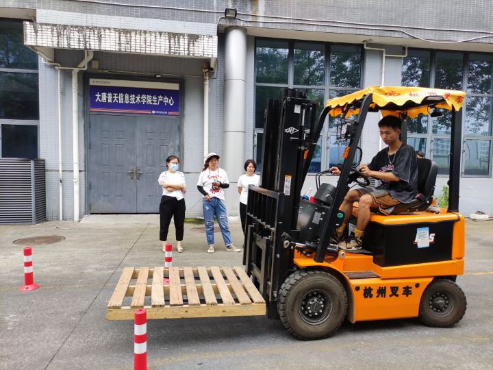 接着钟小容老师、龙丽老师、彭维老师和智能叉车兴趣小组组长向月为大家详细讲解了操作叉车时的注意事项,现场的部分同学在老师的指导下,还进行了叉车操作试驾,体验驾驶的操作要领会。钟小容老师还向大家分享了考叉车证需要的知识和注意事项。重庆旭普科技有限公司工程实丁鑫,为同学们进行了专业的叉车驾驶操作表演。