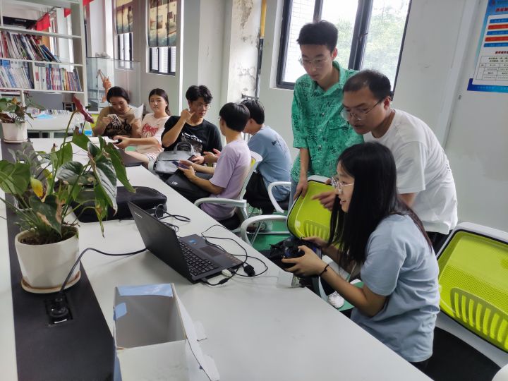 无人机兴趣小组二组组长殷向同学们豪展示了无人机操作训练的成果。在H栋二楼创客中心,无人机兴趣一组组长曾锦隆带领同学们体验了无人机模拟器操作,分享无人机的使用功能、操作技术和注意事项。同时吉恒和向月同学还为大家开展了有奖竞猜活动,同学们踊跃参与其中。