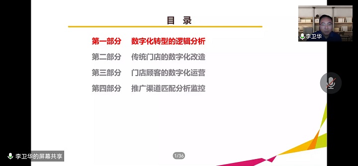 李教授从数字化转型的逻辑分析、传统门店的数字化改造、门店顾客的数字化运营、推广渠道匹配分析监控四个方面系统介绍了商贸流通企业数字化转型的逻辑架构、升级改造路径、运营变革和数字化控制的理论与实践。