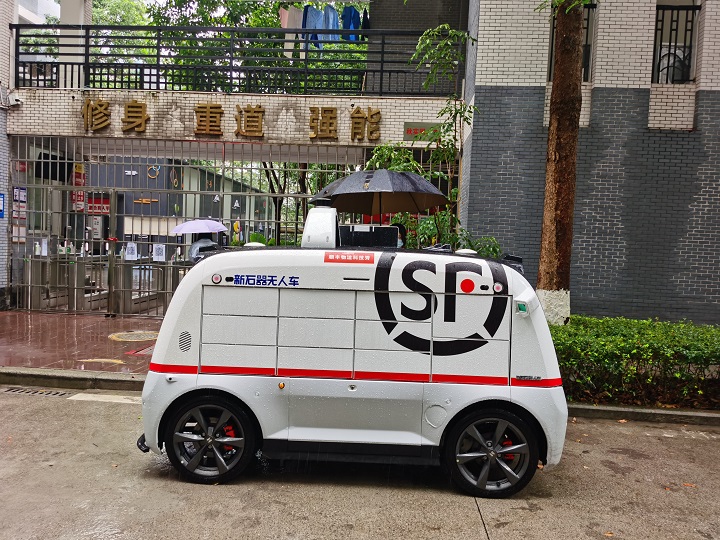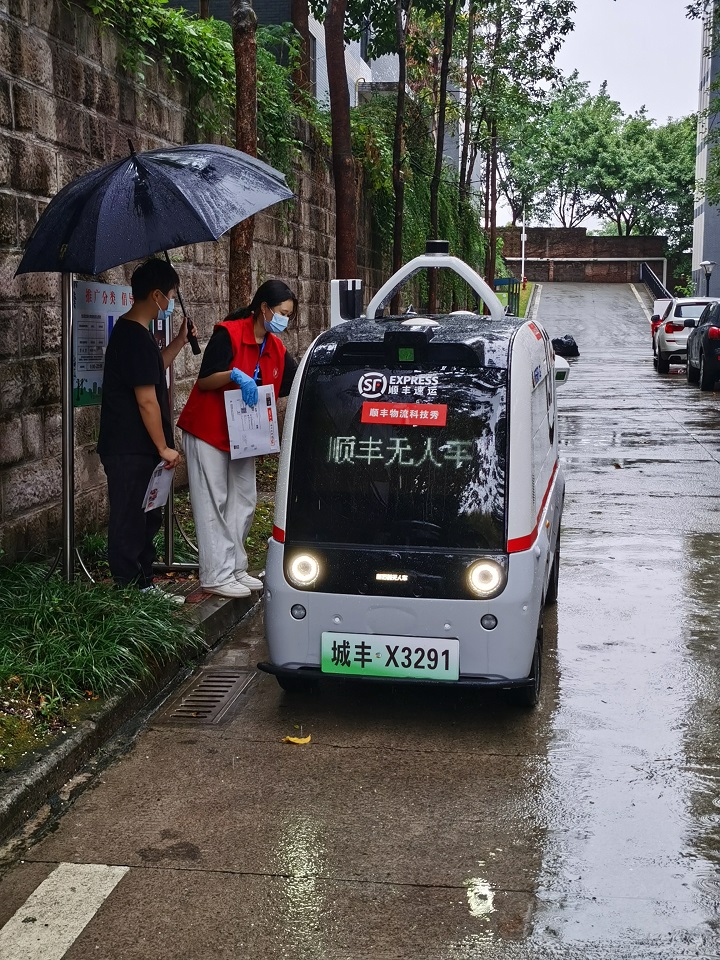 9月20日中午,商学院冒雨组织了一场顺丰物流科技秀线上直播科普宣传活动。本次活动以顺丰快递无人车为载体,以我校与顺丰速运重庆公司共建的智慧物流全流程产教融合实训基地为起点,按照事先设计好的运行路线地图,在学生宿舍区域周边的道路上进行自动巡游、定点自助取件。