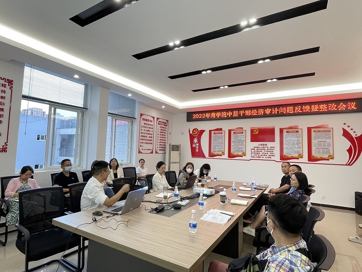 10月4日下午,商学院于敏学楼B502会议室召开2022年度“商学院中层干部经济审计问题”反馈暨整改会议,就本年度各类中层干部经济责任审计问题做宣贯并对后续问题整改工作说明要求。会议由邱云副院长主持,学院各责任教师及对口业务人员等参加会议,问题反馈等相关人员列席会议。