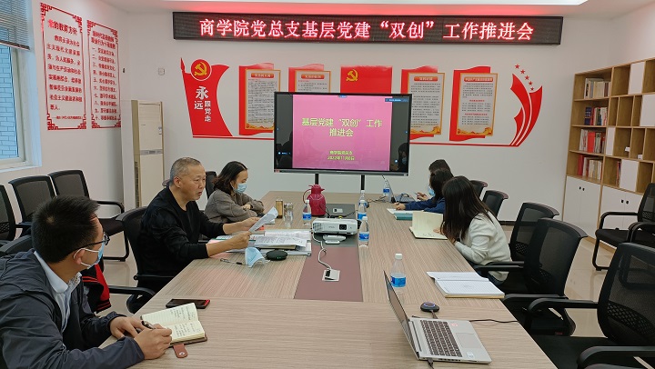 为进一步落实学校党委关于第二批校级党建示范创建和质量创优培育工作部署,推进学院党建示范创建和质量创优工作。11月8日,商学院党总支在现代物流管理专业群党建阵地B502召开基层党建”双创“工作推进会。按照疫情防控要求,会议通过线上线下同步进行,商学院党总支委员、各党支部书记、委员参加本次会议,会议由学院党总支书记蒋芹忠主持。