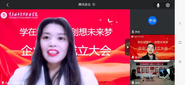 重庆凌山企业管理有限公司总经理夏志斌女士对企业工坊的成立表示了祝贺,她介绍到企业工坊能很好地解决创业主体在创业初始阶段中存在的热点难点问题,同时她还分享了凌山国际贸易数字产业园的相关政策,并指出园区也与现代物流管理专业群企业工坊一道为创业企业提供更优质的服务。