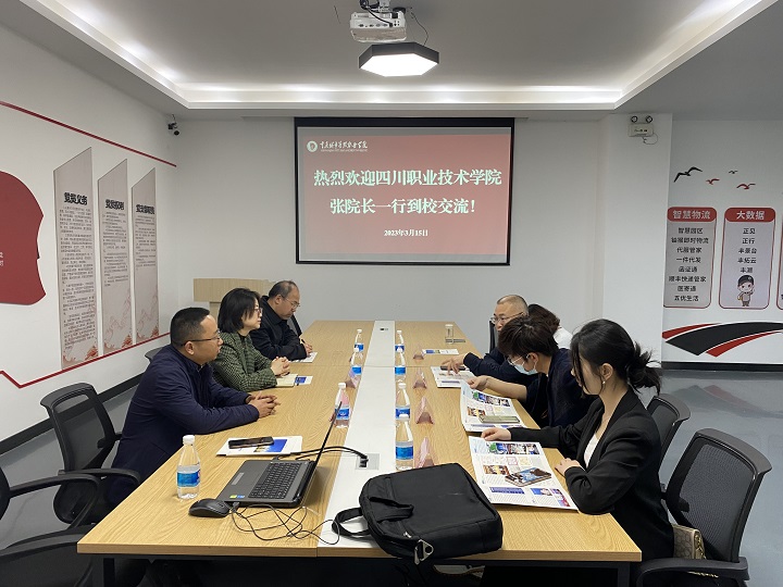 3月15日,四川职业技术学院物流与供应链学院院长张强锋 、物流与供应链学院实训中心主任贾杨兵一行到我校参观智慧物流全流程产教融合实训基地。商学院副院长牟艳红介绍了实训基地在学校体系内的定位与规划、校企合作运营模式、人才培养情况、技能竞赛等情况。