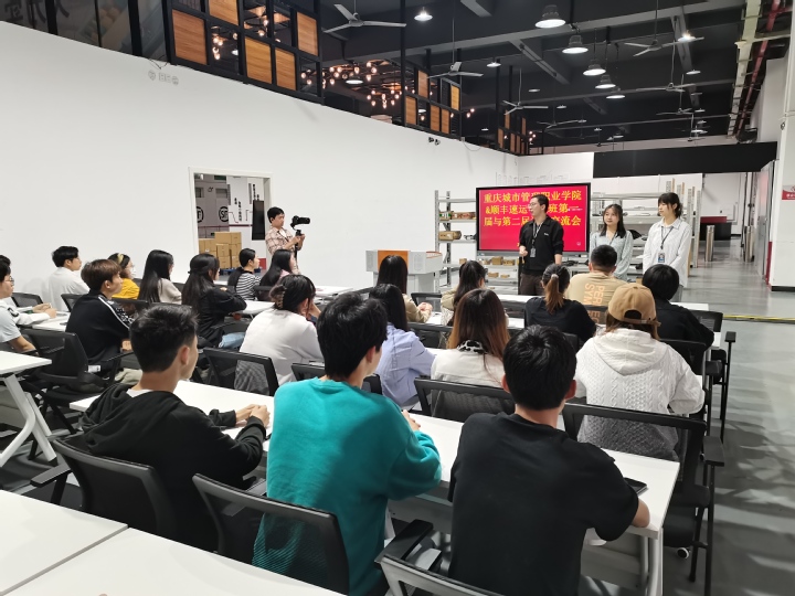 4月11日,商学院现代物流管理专业第二届现代学徒制班沟通交流会在智慧物流全流程产教融合实训基地进行,邀请到顺丰速运重庆有限公司大学城片区负责人覃圣林、现代物流管理第一届现代学徒制优秀代表张添捷、杨小慧、侯自然参加。这次交流会旨在促进学生与实践经验丰富的片区经理以及第一届学徒班学长学姐之间的互动与交流。旨在培养学生在物流管理领域的实践能力和专业素养。