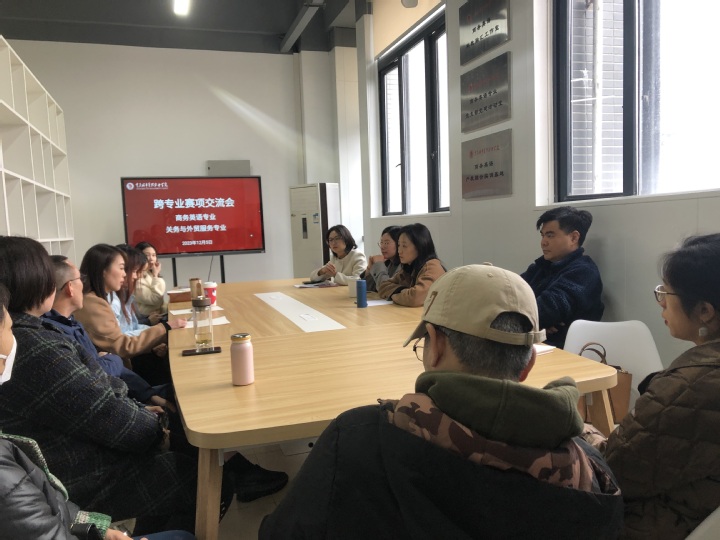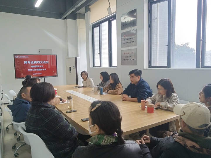 为了更好地推动商务英语专业高质量发展、丰富专业内涵建设、转型和提升技能大赛水平,12月5日,商务英语专业与关贸与外贸服务专业在教学楼H308举行了跨专业赛项交流会。商学院副院长、关务与外贸服务专业党支部书记牟艳红,商务英语专业带头人余洪英,教研室主任、党支部书记杜媛媛和商务英语专业全体党员、专任教师参加了本次交流会。