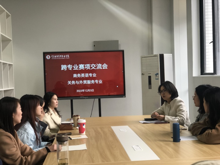 会上,牟艳红详细地介绍了全国技能大赛货运代理赛项目,分享了关务与外贸服务专业参与该赛项的成功经验。商务英语专业、关贸与外贸服务专业就货运代理赛项目进行跨专业赛项合作达成一致。参会的老师也表示将积极地参与到本次赛项的各项工作中,以赛促建,提升商务英语专业跨专业技能大赛成绩。