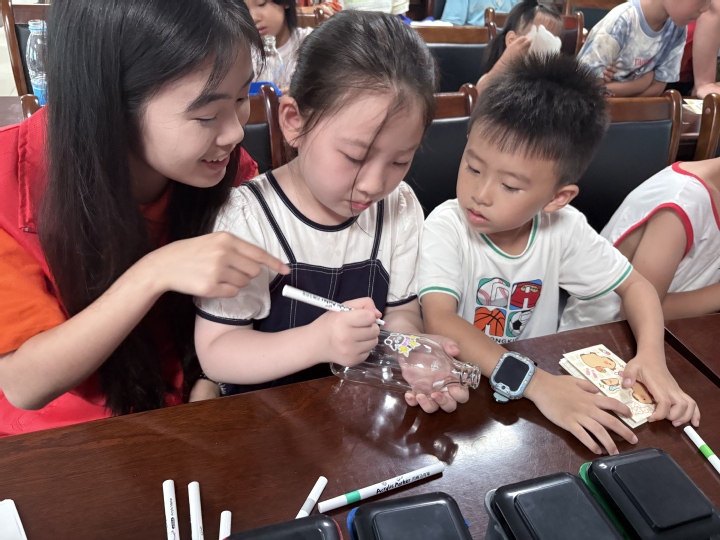 为增强互动体验,实践团成员们精心设计了沉浸式学习环节:通过“科研拼图”游戏,让孩子们分组合作还原“两弹一星”研制历史场景;在“小小科学家”角色扮演中,孩子们模拟科学家攻克技术难题的场景,切身感受科研工作者的智慧与担当。现场不时响起热烈的掌声与惊叹声,孩子们纷纷表示:“原来科学家们这么了不起,我也要像他们一样努力学习!”
