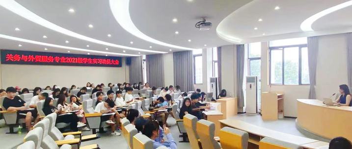 为规范我院学生实习相关工作,加强实习期间安全管理,根据学校关于实习工作的相关安排,6月30日中午,关务与外贸服务专业在H栋三楼学苑大讲堂召开2021级实习学生动员大会,2021级关贸专业实习指导教师、辅导员及全体学生参会。