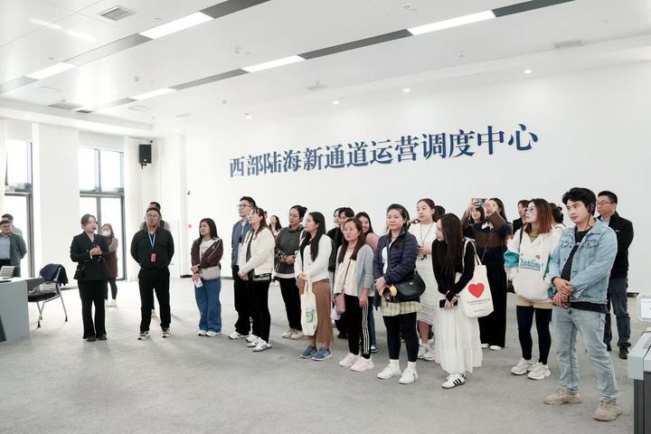 在陆海新通道运营有限公司的运营调度中心,学员们观摩了实时更新的班列订单、开行量、货值辐射范围等数据大屏。作为跨省域共建的综合运营平台,公司已构建覆盖全球127个国家、560个港口的物流网络,并创新推出“一单制”数字提单模式,有效降低跨境运输成本。工作人员特别指出,通道运输品类已扩展至1160余种,包括重庆的柑橘、柠檬等农产品,以及电子产品、整车零部件等工业品,为沿线国家企业提供了一条高效、低成本的出海路径。