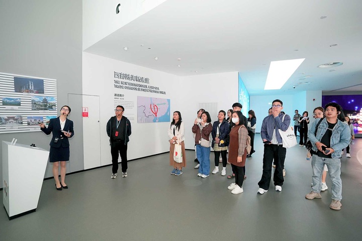 在内陆国际物流展示中心,学员们通过沙盘模型、数字模拟及图文展陈,系统了解了重庆作为国家物流枢纽的规划布局与通道网络。这一平台集中展示了重庆的开放沿革、枢纽通道、口岸功能及产业生态,帮助学员构建对“通道带物流、物流带经贸、经贸带产业”发展逻辑的直观认知。值得一提的是,展厅内微缩模型动态呈现了西部陆海新通道与中欧班列的联动脉络,凸显重庆作为“一带一路”与长江经济带联结点的重要角色。