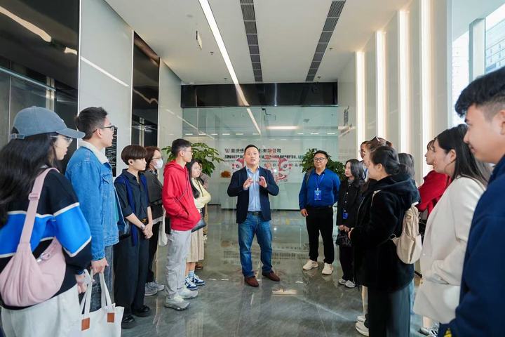 11月4日,重庆城市管理职业学院龚丽、何林静老师带领2025年重庆市政府外国留学生市长奖学金丝路项目——“一带一路”国家跨境电商与国际供应链管理研修班的老挝学员,赴中新(重庆)跨境电商产业园开展实地研学。本次活动旨在通过现场参访,帮助学员深入了解跨境电商全链条运营模式与国际供应链协同实践经验。