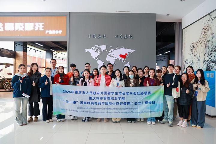 11月10日,在商学院龚丽、金莹老师的带领下,2025年重庆市政府外国留学生市长奖学金丝路项目——“一带一路”国家跨境电商与国际供应链管理研修班的老挝学员,前往重庆嘉陵嘉鹏工业有限公司开展实地研学。本次活动通过现场观摩与交流,帮助学员深入了解制造业企业在跨境贸易与供应链管理中的实际操作流程。