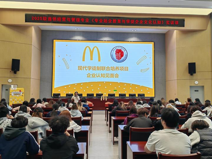 本次实训为期一周,纳入“始业教育”认知实习学分。活动以“企业文化进课堂、职业认知入培养”为主线,邀请永辉、麦当劳、首旅集团、山姆等多家知名连锁企业负责人走进校园,通过企业沙龙、专题讲座、面对面交流等形式,向学生系统介绍行业趋势、商业模式、岗位能力要求及职业发展路径,帮助学生直观建立对专业与职业的初步认知。