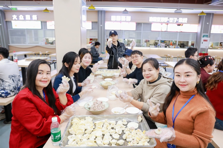 包饺子活动气氛热烈。在李颖、龚丽等老师及志愿者的指导下,学员们亲手擀皮、填馅、捏合,制作出形态各异的饺子。品尝着自己动手完成的美食,大家连连称赞,在劳动与分享中感受到中国饮食文化所传递的团圆与暖意。