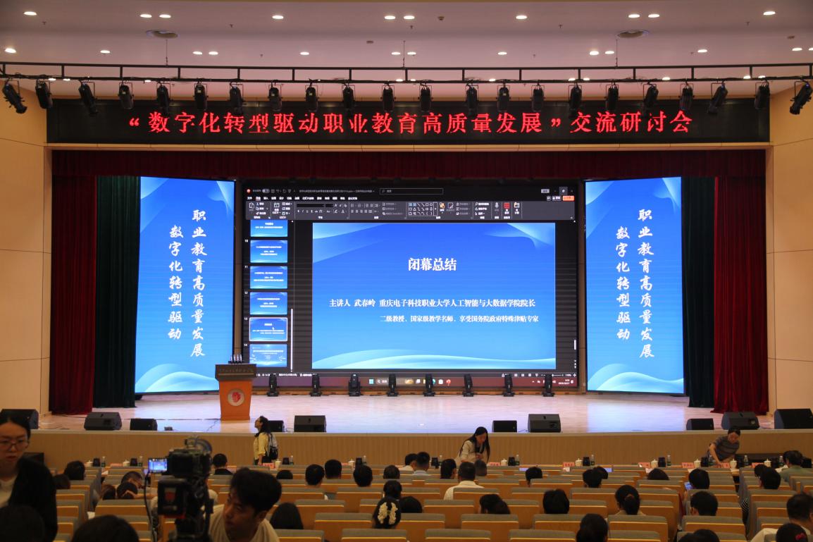 “数字化转型是职业教育高质量发展的重要驱动力。”我校党委副书记、校长邓明国重点介绍了学校办学成果以及在数字化转型中的实践,例如“学在渝橙”智慧教学平台、教学“云端大脑”,智慧民生虚拟仿真实训基地等成果,以及学校先后获评重庆市智慧校园建设示范校、教育部首批职业院校数字校园建设试点学校等荣誉。