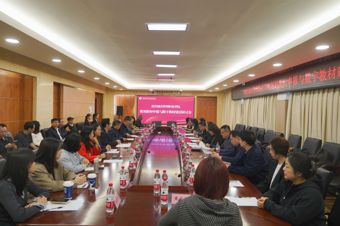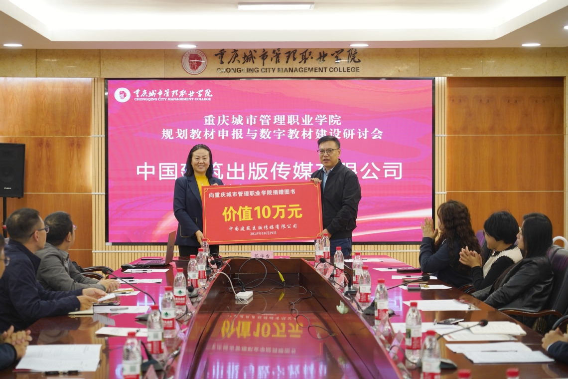 10月29日,由中国建筑出版传媒有限公司、重庆城市管理职业学院联合举办,旨在深化校企合作,共同探讨新时期教材建设发展路径,推动优质教育资源共建共享的规划教材申报与数字教材建设研讨会在学校顺利举行。中国建筑出版传媒有限公司党委书记、董事长刘新锋,中国建筑出版传媒有限公司教育教材分社副社长杜洁,我校校长邓明国、副校长周毅、刘幼昕、彭勇以及双方相关部门负责人参加会议。另外,我校专业教师代表和来自重庆电子科技职业大学、重庆工程职业技术学院、重庆航天职业技术学院、重庆城市职业学院、重庆建筑工程职业学院、重庆能源职业学院、重庆建筑科技职业学院、重庆文化艺术工程职业学院等兄弟院校30余名教师代表也共聚一堂,研讨建筑室内设计、园林工程技术、人工智能技术、物联网应用技术等专业课程数字教材建设工作。
