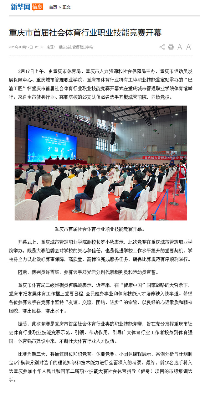 [新华网]重庆市首届社会体育行业职业技能竞赛开幕