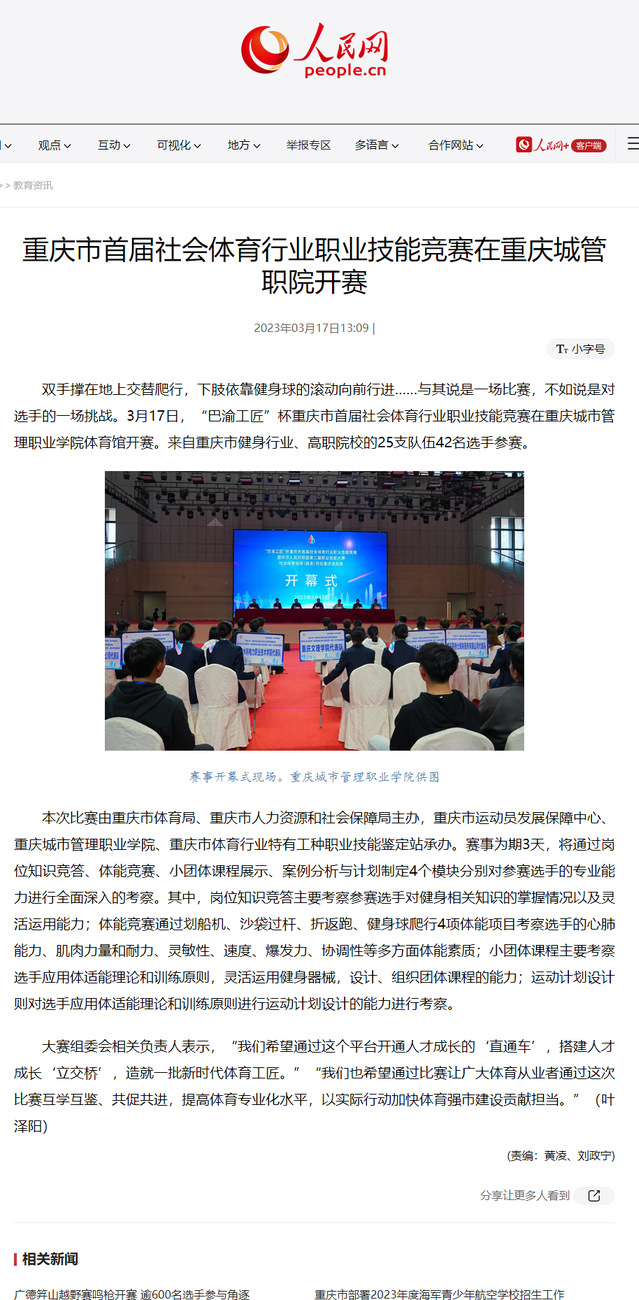 [人民网]重庆市首届社会体育行业职业技能竞赛在重庆城管职院开赛