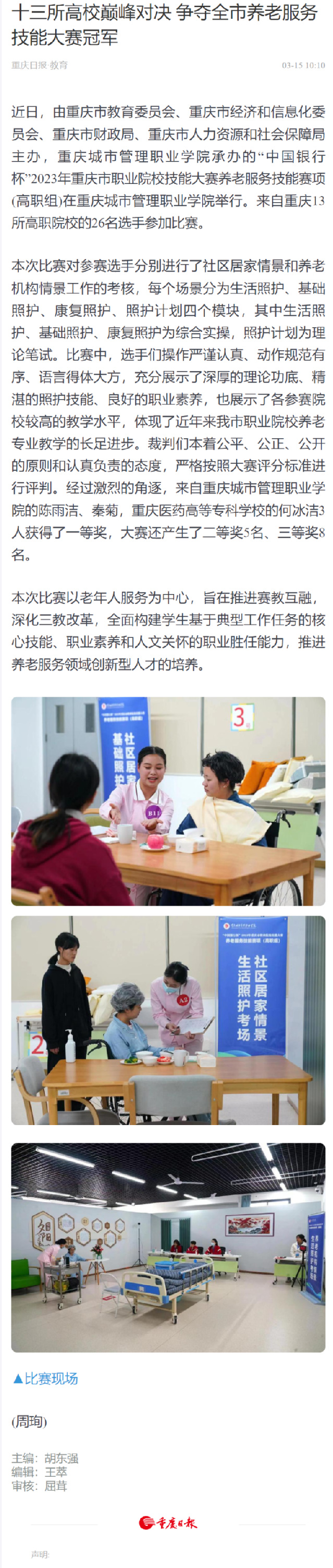 [重庆日报]十三所高校巅峰对决 争夺全市养老服务技能大赛冠军