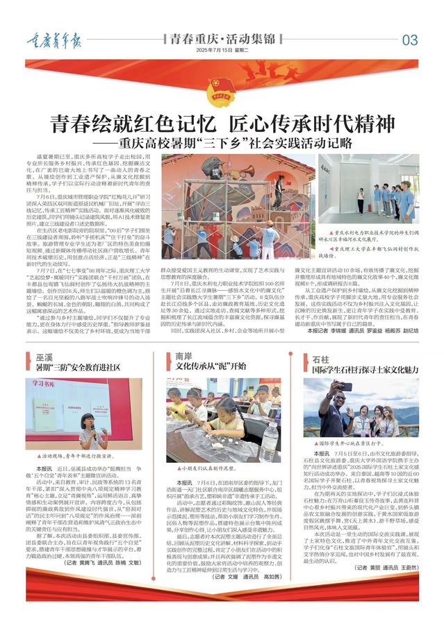 [重庆青年报]青春绘就红色记忆 匠心传承时代精神 重庆高校暑期“三下乡”社会实践活动记略