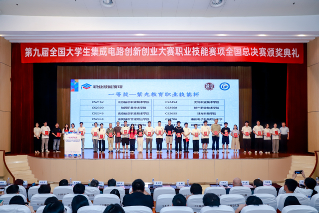 8月8-10日,第九届全国大学生集成电路创新创业大赛职业技能赛项全国总决赛在江苏信息职业技术学院和广西机电职业技术学院同步召开。参赛院校超150家,报名队伍数近900支,参赛总人数超2200人。经过激烈角逐,由牟洪江、刘远老师指导的张淞淞、李豪、郭雪寒同学斩获紫光教育职业技能杯一等奖,何毅松、郑卓等同学获得二等奖2项,三等奖2项。