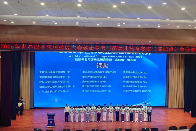 8月28日至9月2日,世界职业院校技能大赛健康养老与婴幼儿托育赛道(高职组)争夺赛在云南交通运输职业学院举办。大赛吸引了来自全国155支优秀参赛队伍、近600名选手参与角逐。我校智慧康养学院杜庆、聂麟懿两位指导教师带领学生组队参赛。经过激烈角逐,我校参赛团队凭借扎实的专业技术和稳定的现场表现荣获铜奖。