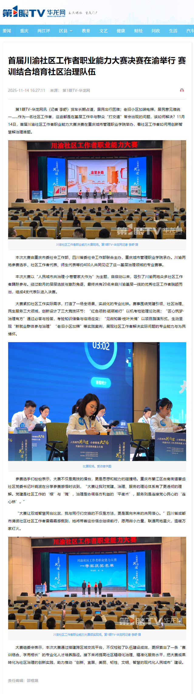 [华龙网]首届川渝社区工作者职业能力大赛决赛在渝举行 赛训结合培育社区治理队伍