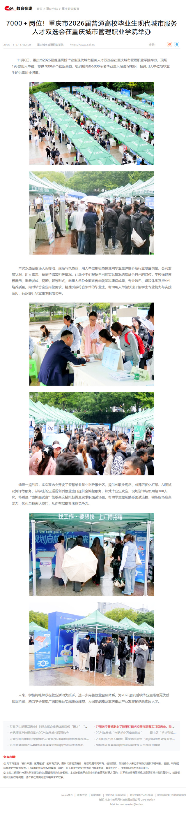 [中国教育在线]7000+岗位!重庆市2026届普通高校毕业生现代城市服务人才双选会在重庆城市管理职业学院举办