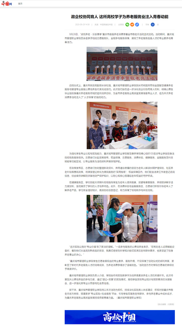 [中国网]政企校协同育人 这所高校学子为养老服务业注入青春动能