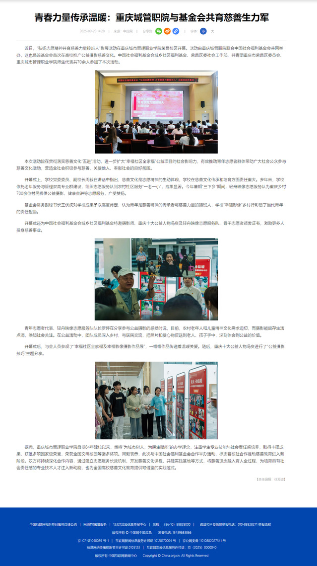 [中国网]青春力量传承温暖:重庆城管职院与基金会共育慈善生力军