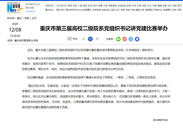 [新华网]重庆市第三届高校二级院系党组织书记讲党建比赛举办