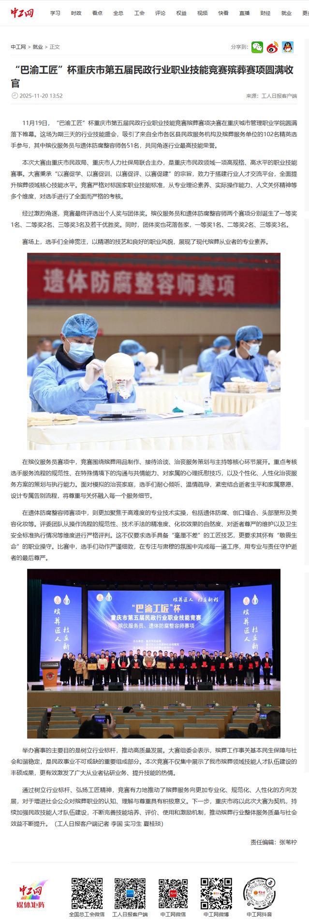[中工网]“巴渝工匠”杯重庆市第五届民政行业职业技能竞赛殡葬赛项圆满收官