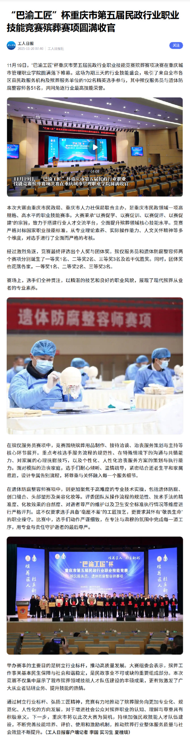 [工人日报]“巴渝工匠”杯重庆市第五届民政行业职业技能竞赛殡葬赛项圆满收官