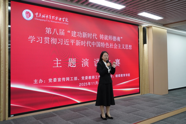 来自全校12个党总支(直属党支部)的教师选手同台比拼,大家紧扣“建功新时代·铸就师德魂”主题,或以亲身经历讲述扎根一线、立德树人的故事,或聚焦身边榜样,再现甘为人梯、奖掖后学的动人瞬间:通识教育学院黄雪分享《舞步的韵律,生命的力量》,把舞蹈课堂变成“心灵加油站”;马克思主义学院马璨以《做心怀“国之大者”的育人园丁》为题,致敬张桂梅、杨振宁,表达“为党育人、为国育才”的执着;智慧康养学院唐兰芳回顾从医师到教师的转身,诠释“不同职业、同样守护生命”的赤诚;大数据与信息产业学院薛云飞用七年陪伴一名“慢成长”学生的经历,印证“花期各不同,静待繁花绽”的师者情怀。声情并茂的演讲赢得阵阵掌声。评委代表杨瑞在点评中表示:“一段段质朴的教育叙事,集中展现了新时代城职教师踔厉奋发的精神风貌,也映照着学校师德师风建设的丰硕成果。”