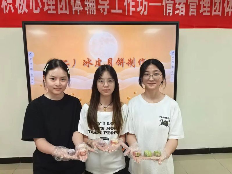 最后“制作冰皮月饼”环节,将整场活动推向高潮。同学们四人一组,在志愿者的指导下,亲手完成揉制饼皮、包馅、压模等工序。通过此次劳动实践,同学们不仅掌握了传统糕点制作的基本技能,也切身感受到传统工艺与现代创意相结合的独特魅力。