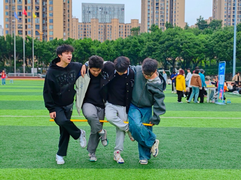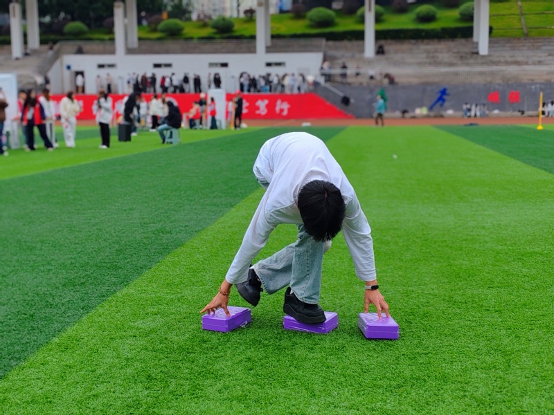 运动会在主持人热情开场后拉开帷幕。随后,参赛选手跟随领操人员完成热身,充分活动关节、规避损伤,现场欢声笑语不断,快速点燃竞技热情。本次运动会设四人五足、摸石过河、合力运球等六大项目,各项目均区分男、女生组设置不同赛道长度,兼顾公平与趣味,参赛队伍需持集章卡完成全部项目。