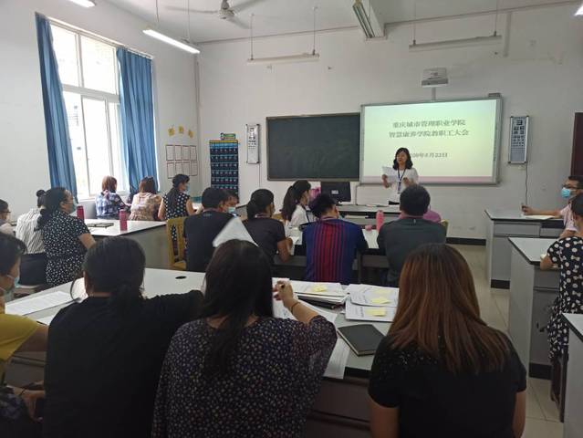 5月22日,智慧康养学院全体党员教师及的党外知识分子在教学楼C211召开了复学动员会议。会上,张俊院长根据学校防疫工作领导小组总体要求,结合智慧康养学院的实际情况,带领大家学习了《重庆城市管理职业学院返校复课期间新冠肺炎疫情防控实施方案》,重点解读了发热咳嗽人员的处理流程,并要求全体党员教师从严政治纪律,提高政治站位,带头遵守关于疫情防控的各项规定,发挥先锋模范带头作用,用实际行动守护学生,诠释共产党员入党初心和使命。大家纷纷表示:坚决服从服务疫情防控大局,全力维护学生生命安全和校园稳定。康疗与康工专业党支部孙科说:“作为党员教师,我无法做到去一线支援,但我会坚守教育使命,弘扬师德师风,以生为本,精心准备,坚决完成教育行政部门与学校布置的各项任务,阻断疫情向校园蔓延,守校园一方平安。”