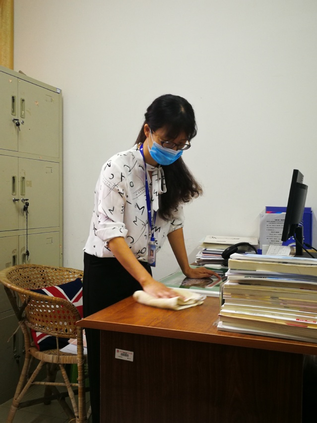 会后,党员教师再次对办公室进行了全面清扫消杀,并重点对固定电话、门把手等病毒传播媒介进行清洁消毒,通过两个小时的努力,学院各办公室干净整洁,让人感觉焕然一新。此次办公室清扫工作改善了学院办公区域环境卫生,切断了病毒传播途径,为即将开始的线下复学工作提供了保障。