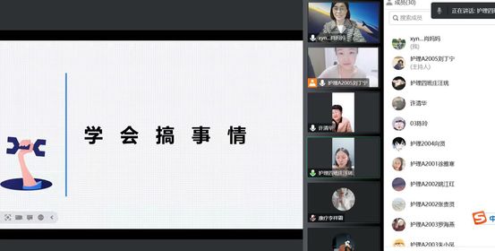 肖建英老师首先简述了分享会举行的原因及意义。她说,因疫情防控组织同学们在云端相聚,目的是分享实习四个月以来的收获、趣事或囧事,让同学们在轻松的氛围里相互促进、共同成长,同时表达了对同学们的想念和牵挂。同学们纷纷积极发言主动分享,叙说各自的收获、感动、困惑与不足,展现出各自丰富多彩的实习生活,认识到理论与实践相结合的重要性,同时感恩带教老师的严苛与宠爱,表示在以后的实习中会更加珍惜学习机会、勤练操作技术、理论结合实践,让自己快速成长。最后,许清华和肖尧老师为同学们强调了以后的实习过程中需要更加注意的事项,同时祝贺同学们在实习过程中已收获良多,进步很大,让同学们思考毕业后的职业道路,并为此做准备。