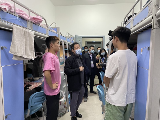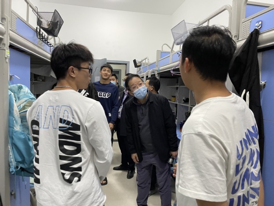 调研慰问结束后,任波书记同张俊书记、田奇恒院长以及智慧康养学院留守在校的全体教师,一起深入学生公寓,走访慰问社会体育专业2022级新生。