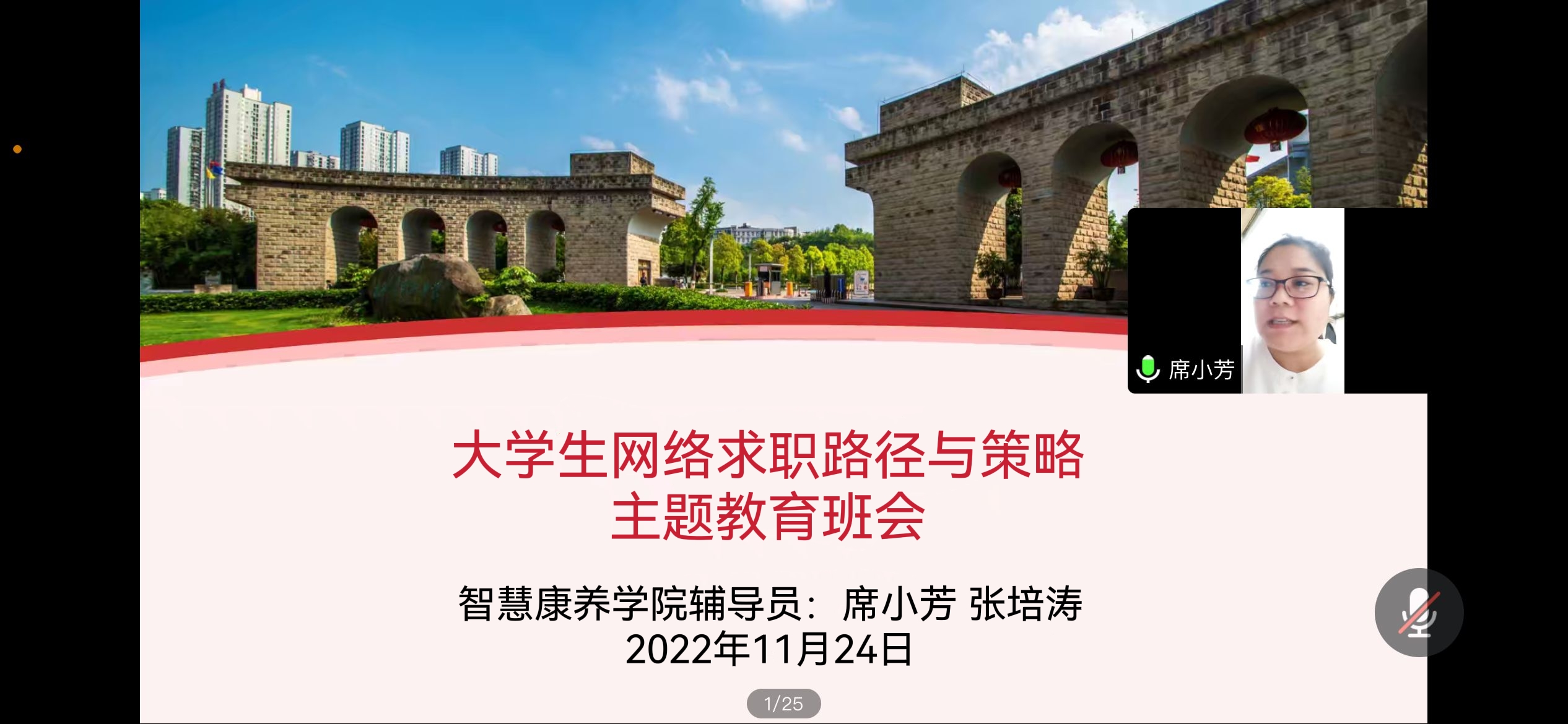 为更好地做好2023届毕业生就业指导工作,11月24日,智慧康养学院辅导员席小芳、张培涛面向2020级全体学生组织了“大学生网络求职路径与策略”主题教育班会。