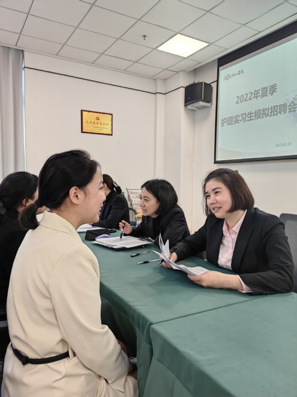 为让护理实习生熟悉招聘的基本形式和流程,了解面试的基本礼仪和规范,提高学生应聘能力和社会竞争力。3月10日,重庆松山医院护理部举办了实习生模拟招聘会,我院护理专业教师杨小红、姚珍和护理实习生全程参与。